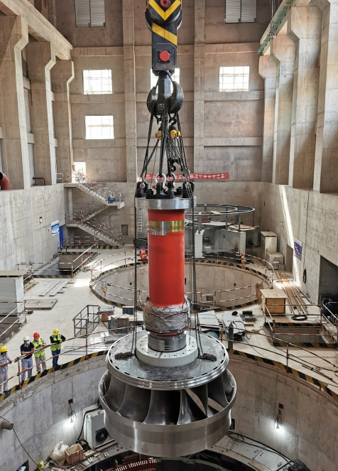 經(jīng)過(guò)現(xiàn)場(chǎng)施工人員的精心操作,機(jī)組轉(zhuǎn)輪順利實(shí)現(xiàn)一次性吊裝就位,提高工作效率,加快機(jī)組轉(zhuǎn)輪安裝速度。